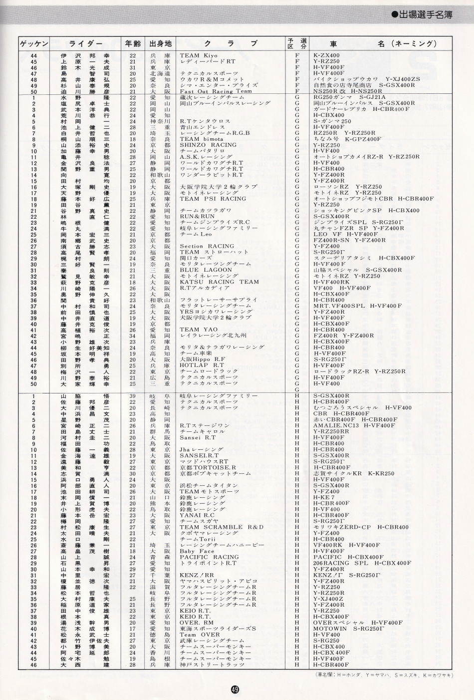 予選結果表