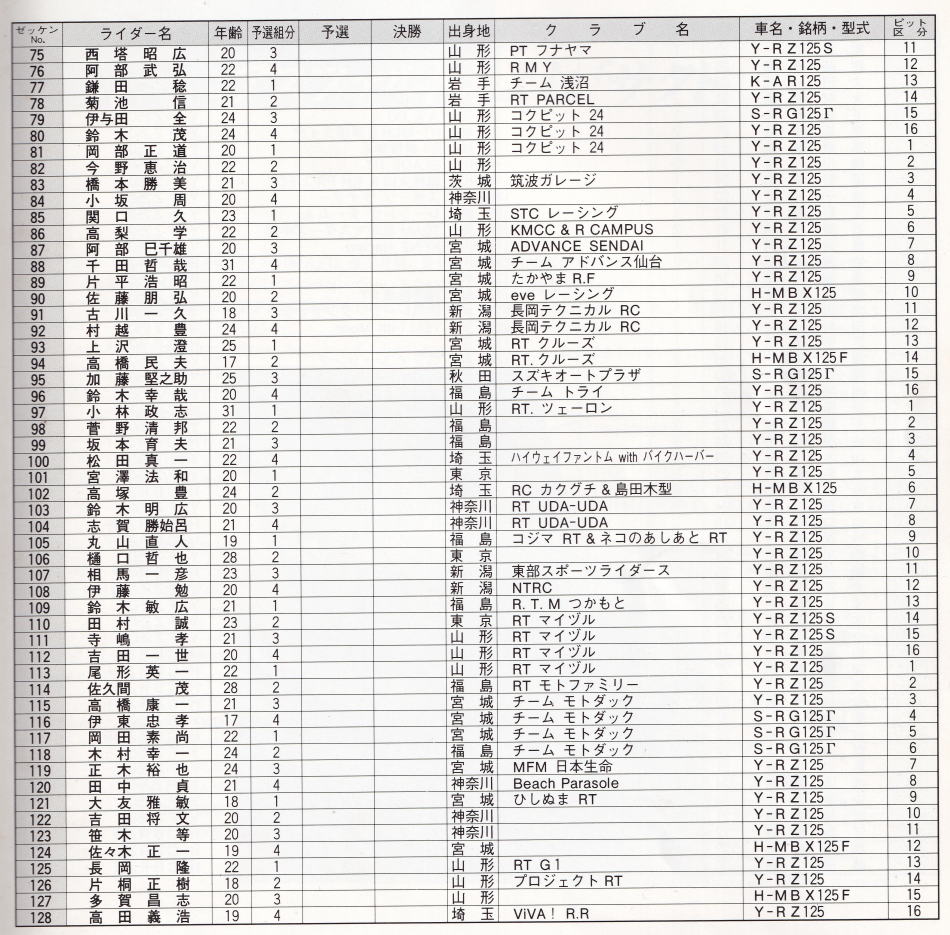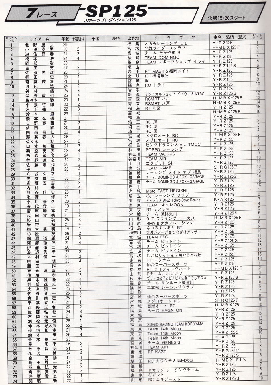 以上 SP125 予選組