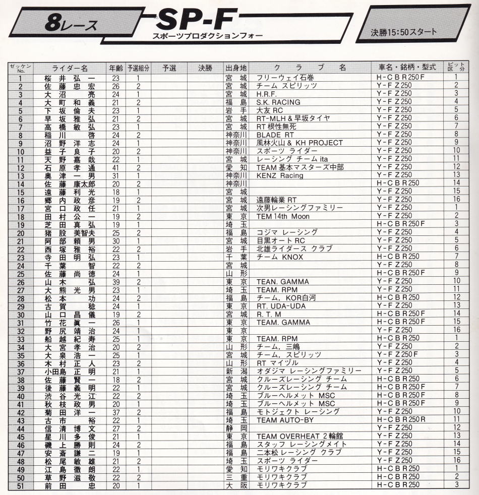 以上 SP250F 予選組