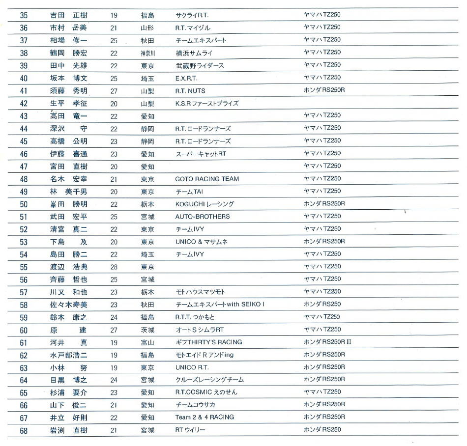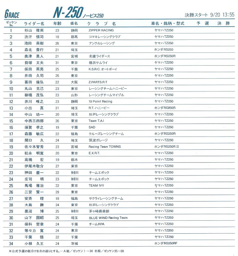 | 1987年9月19.20日 | N250 | エントリー 68台 |