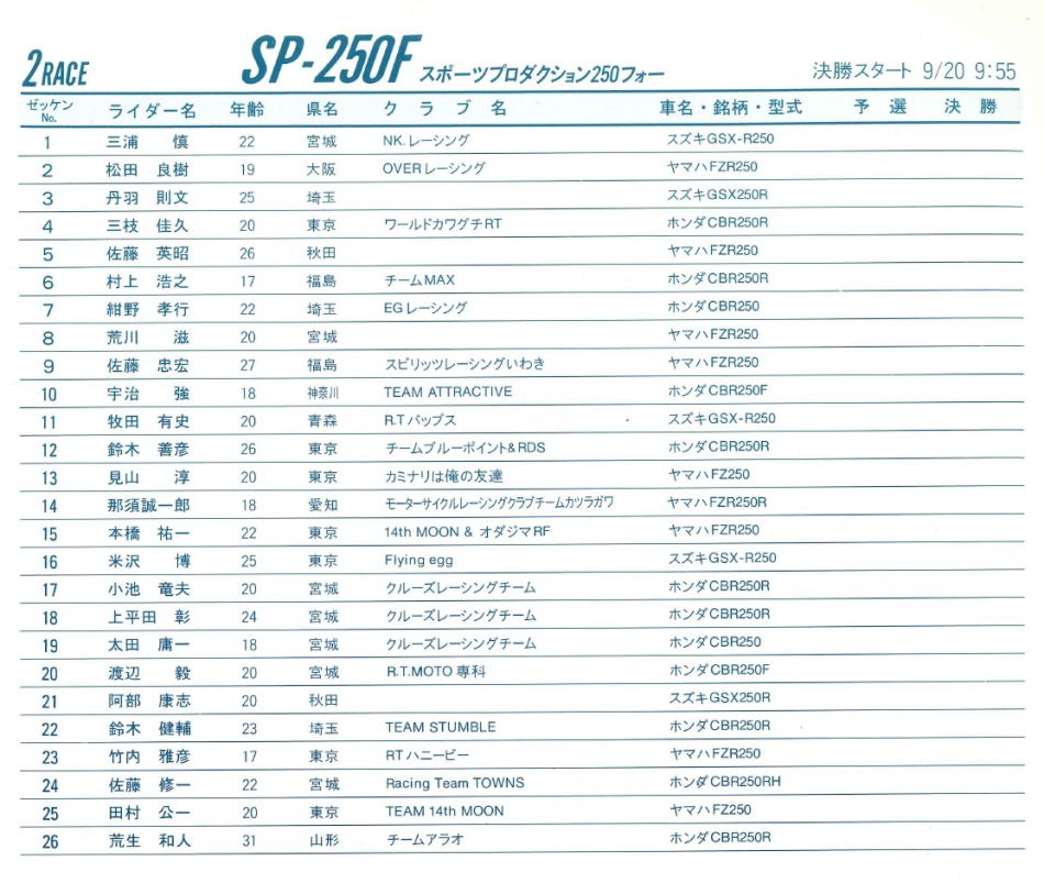 以上 SP250F 予選組