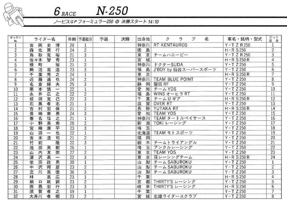 以上 N250 予選組