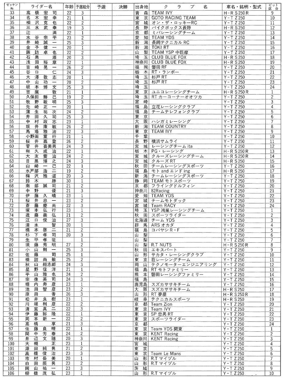 1987年9月26.27日 N250  エントリー 118台