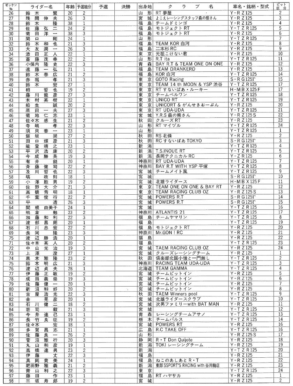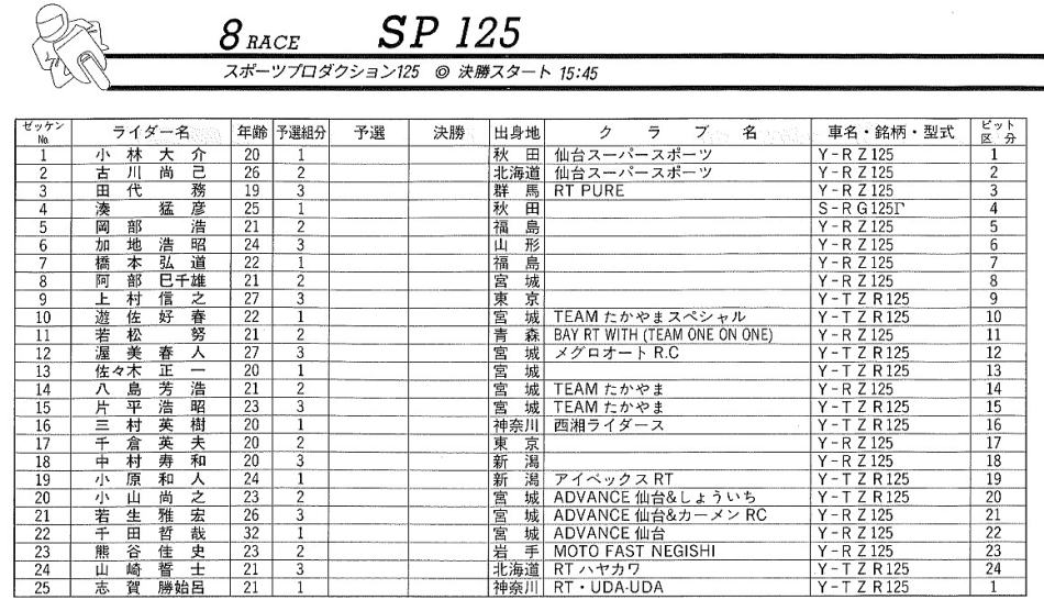 以上 SP125 予選組