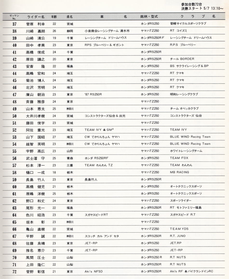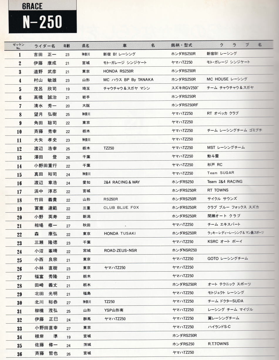 以上 N250 予選組
