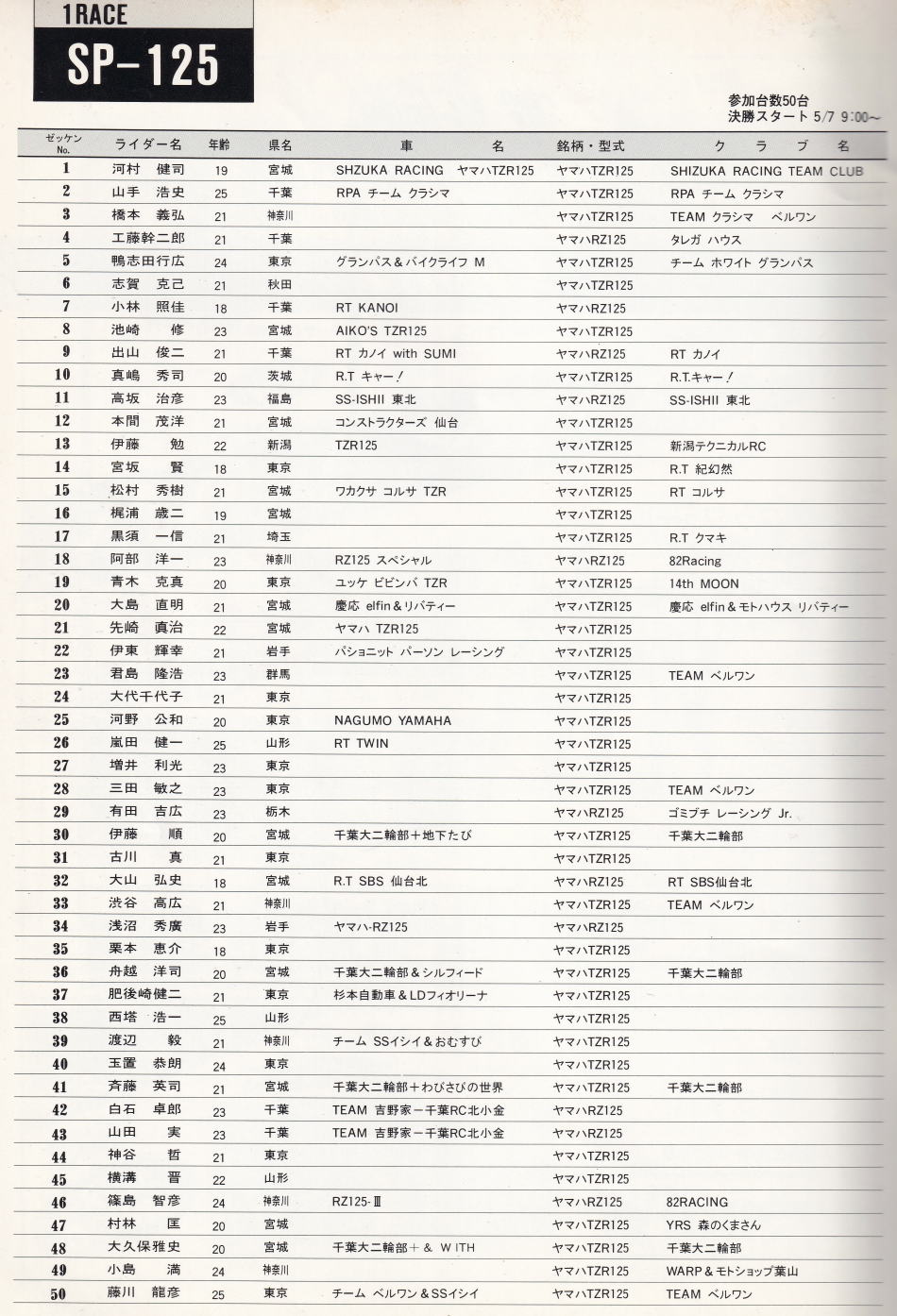 以上 SP125 予選組