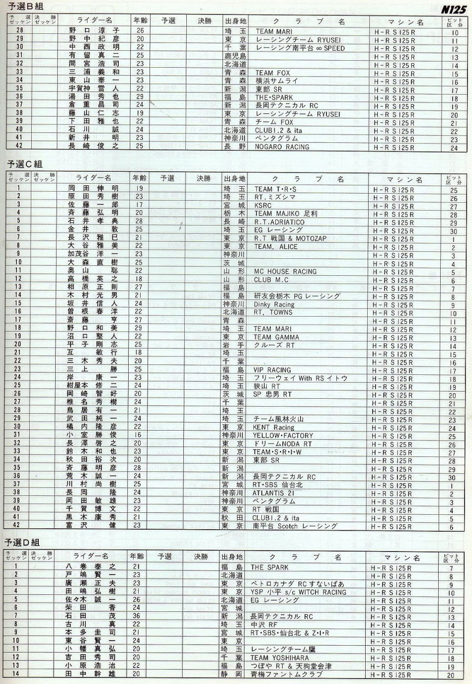 開催クラスへ戻る  予選結果表  決勝リザルト