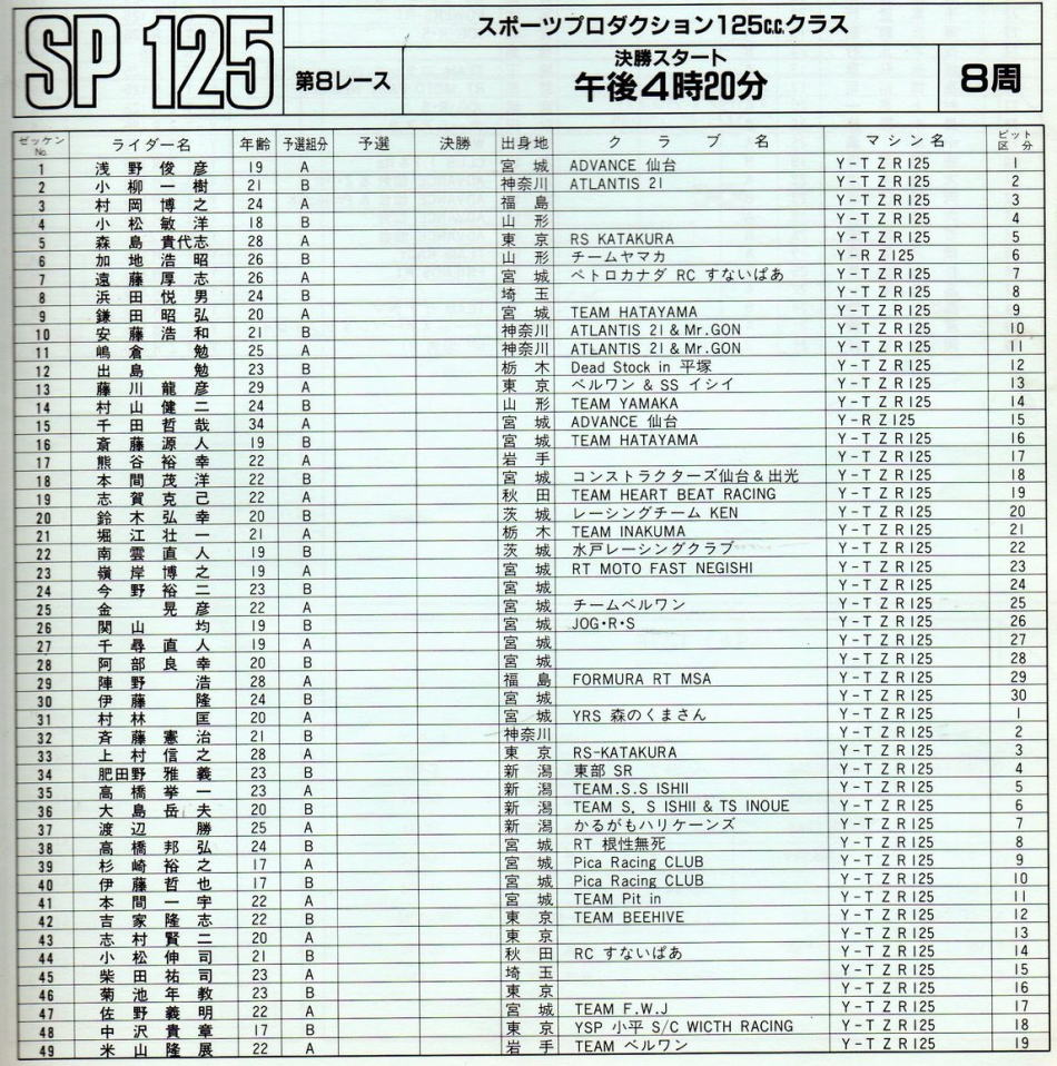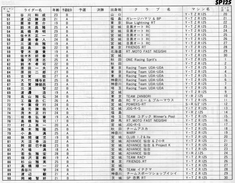 1989年8月5.6日 SP125  エントリー 90台