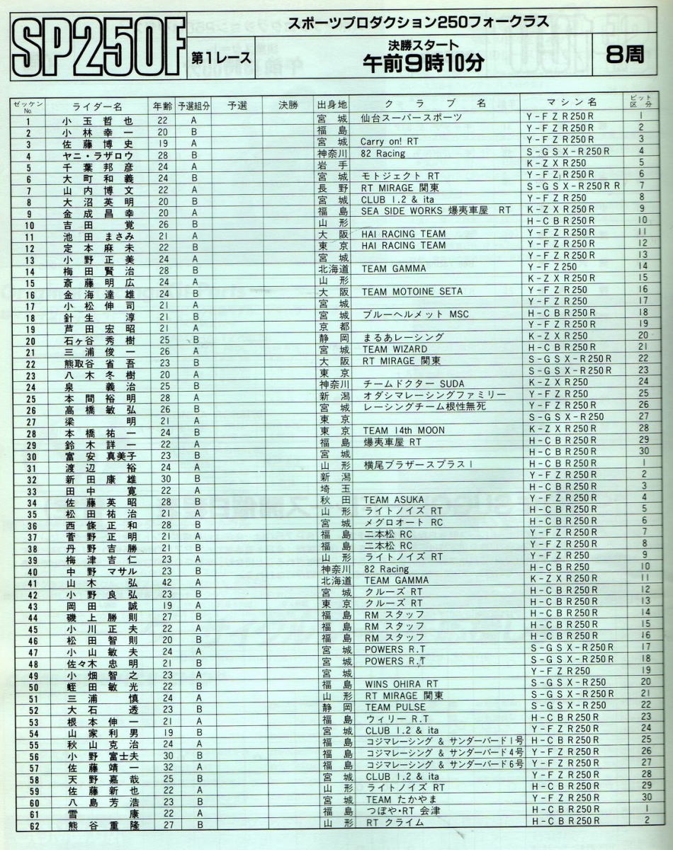 以上 SP250F 予選組