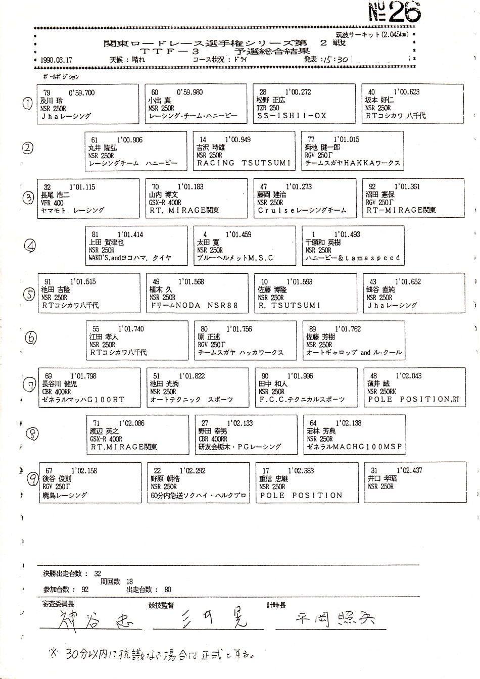 予選結果表