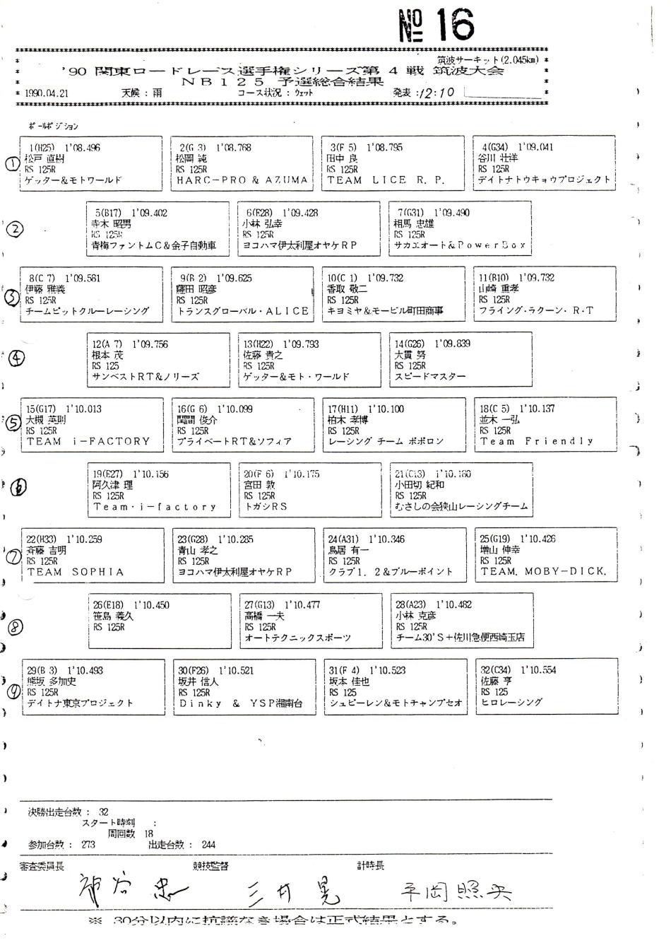 開催クラスへ戻る  予選結果表  決勝リザルト