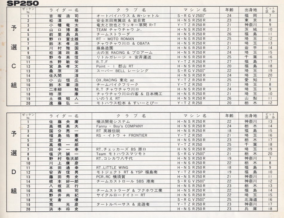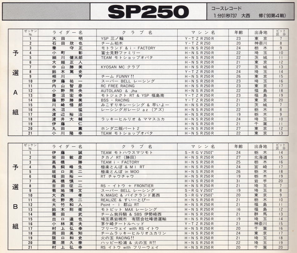 以上 SP250 予選組