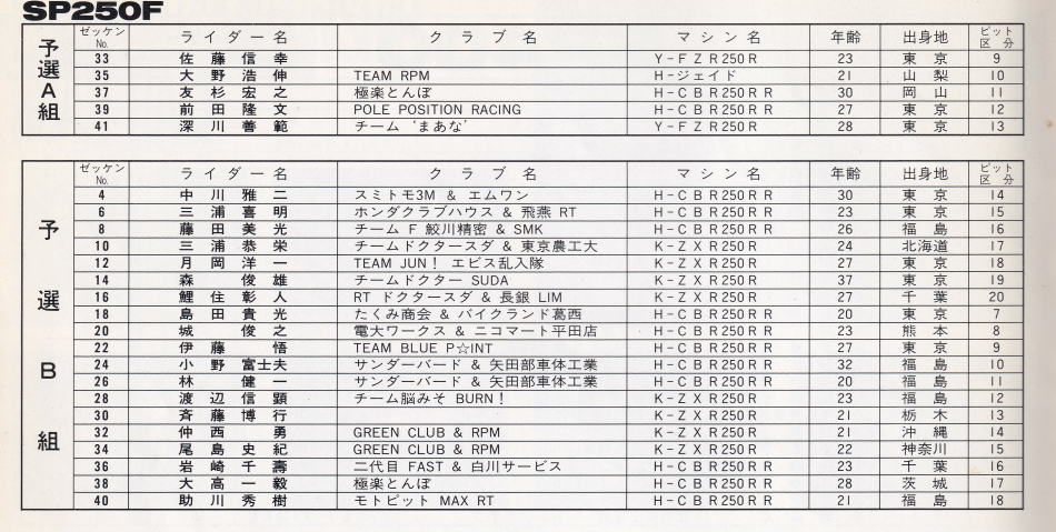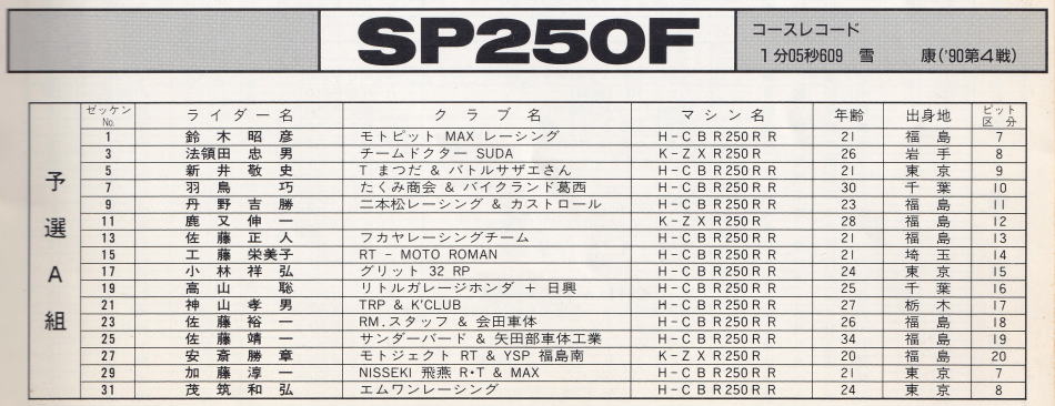 以上 SP250F 予選組
