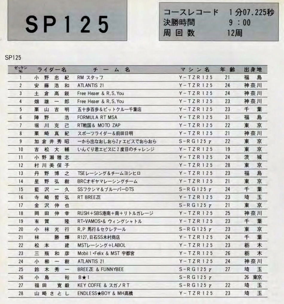 以上 SP125 予選組