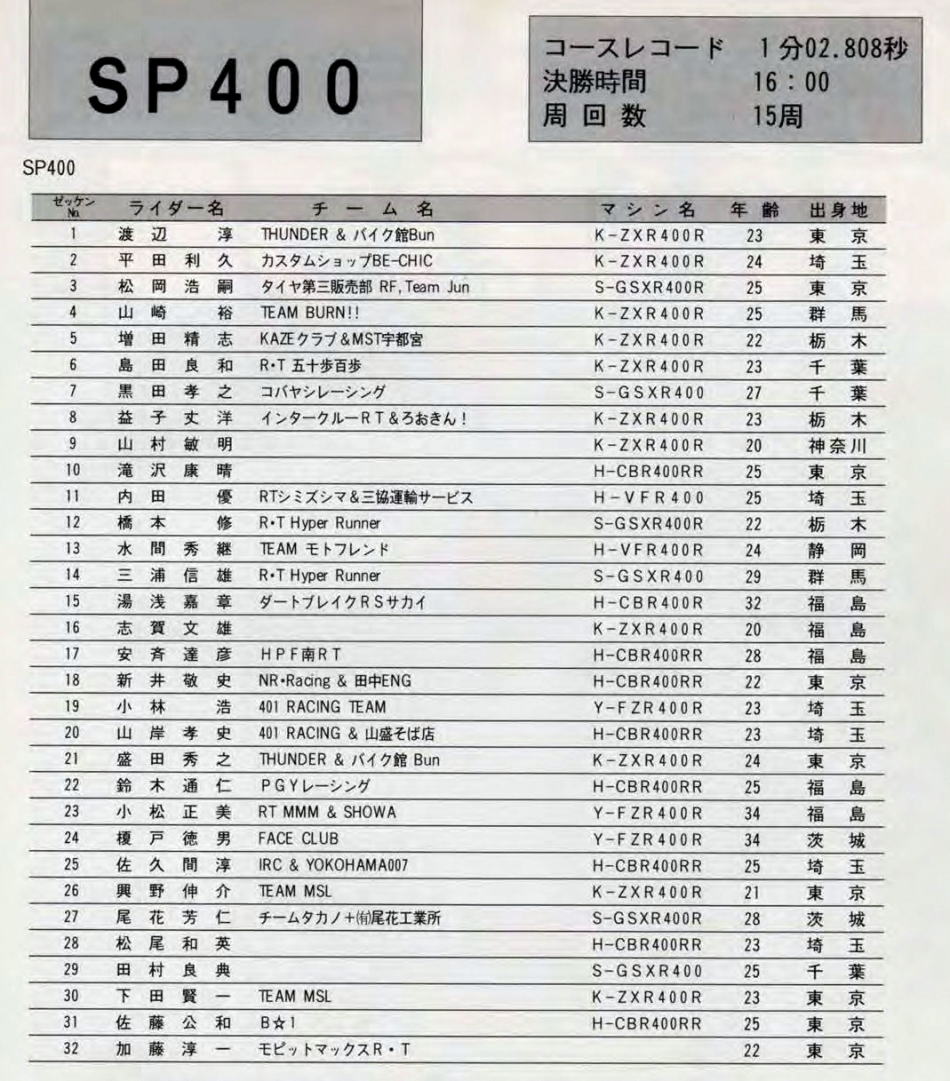 以上 SP400 予選組