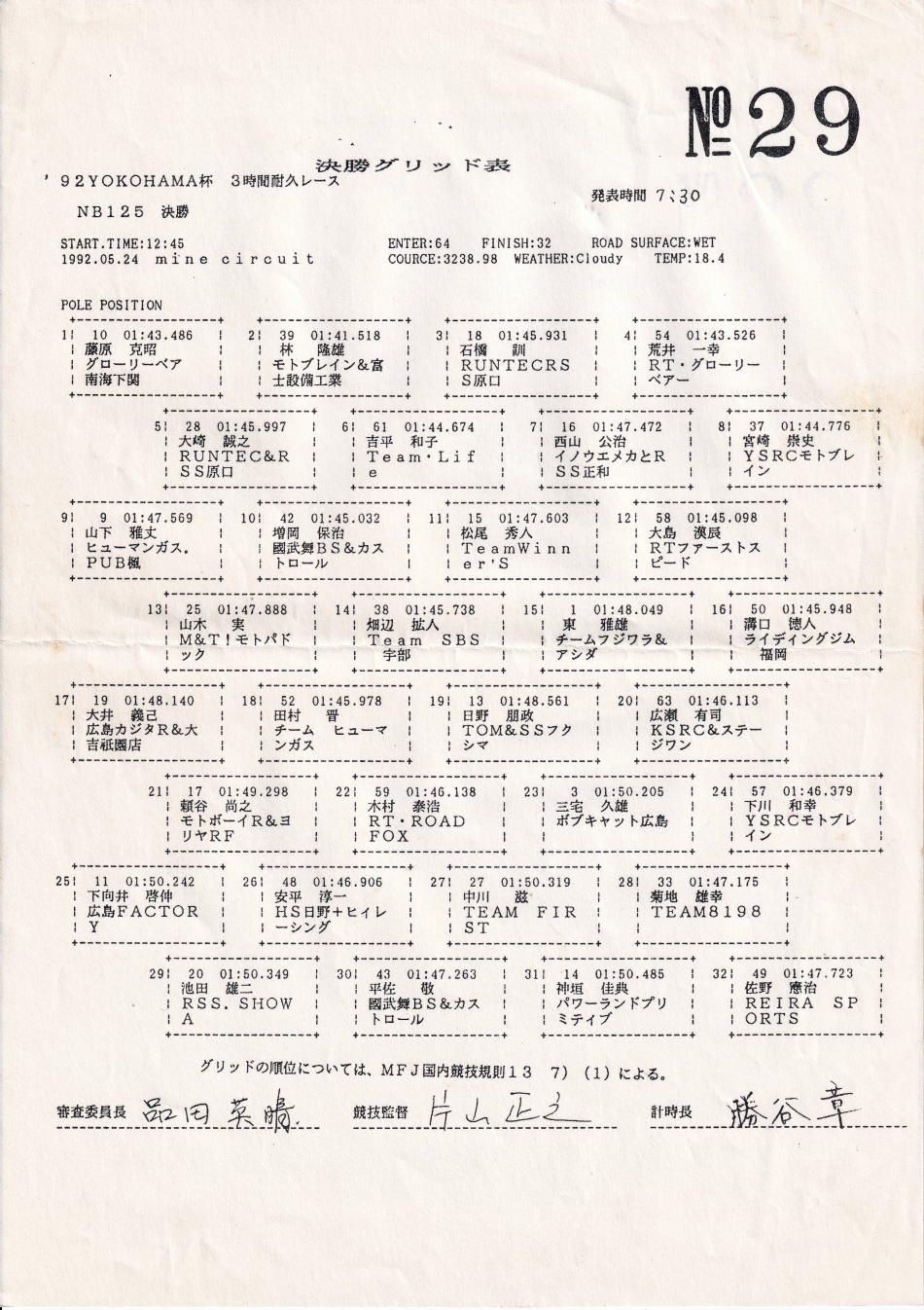 予選結果表