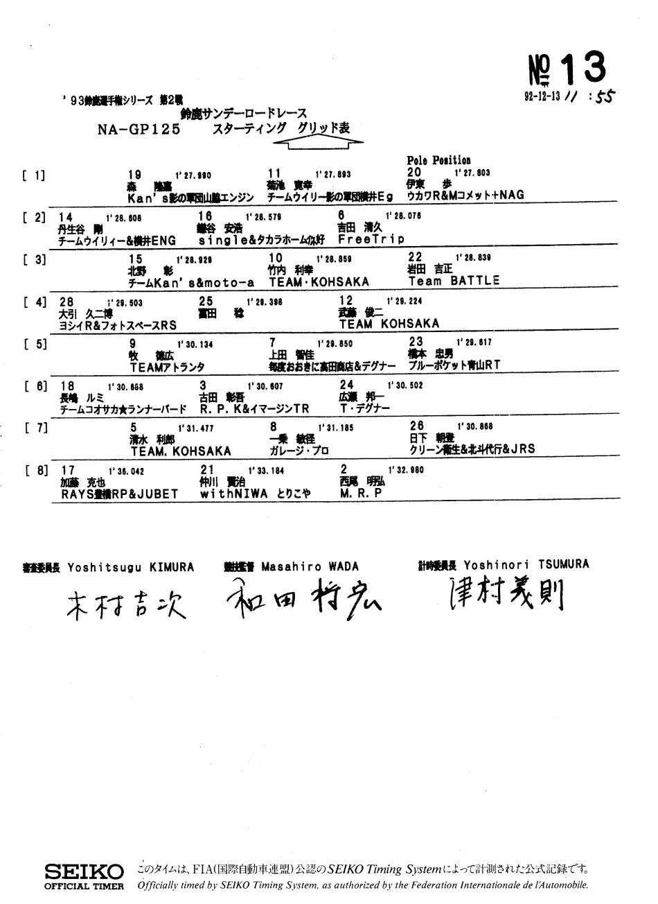 開催クラスへ戻る  予選結果表  決勝リザルト