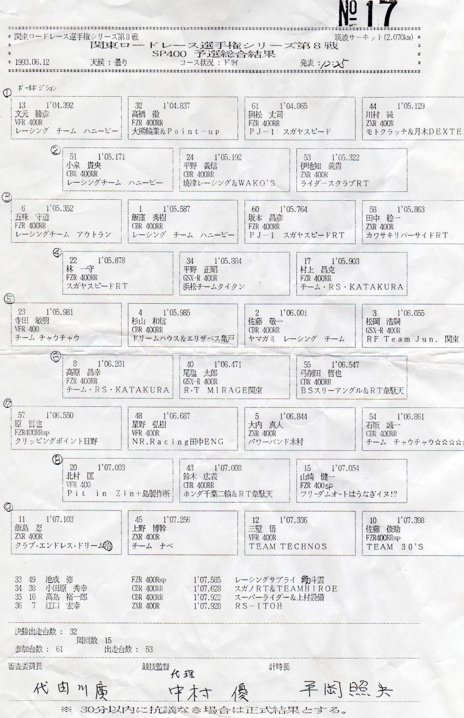 予選結果表