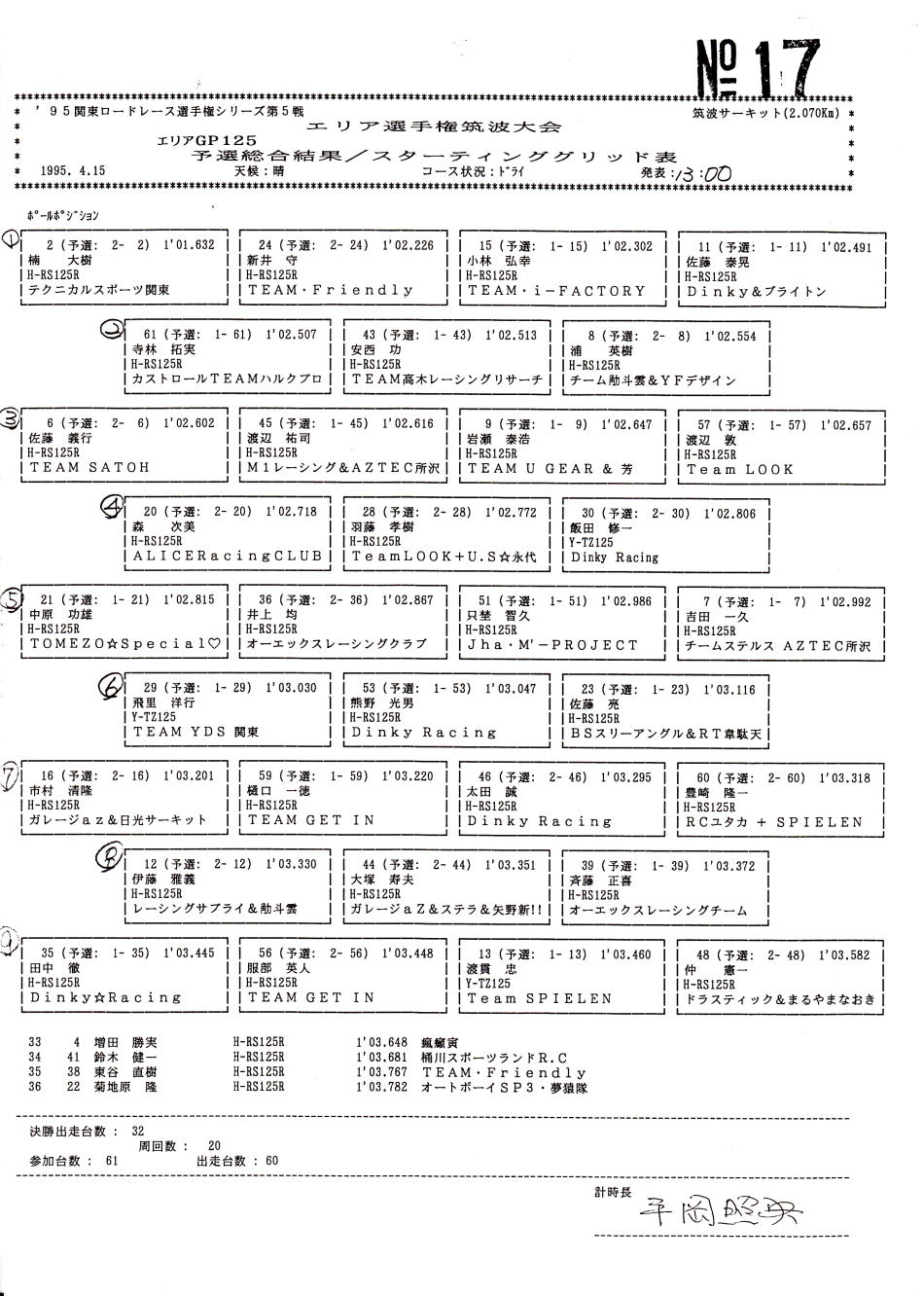 予選結果表