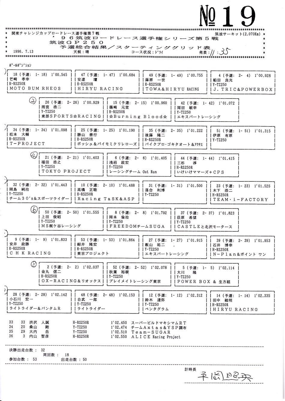 予選結果表