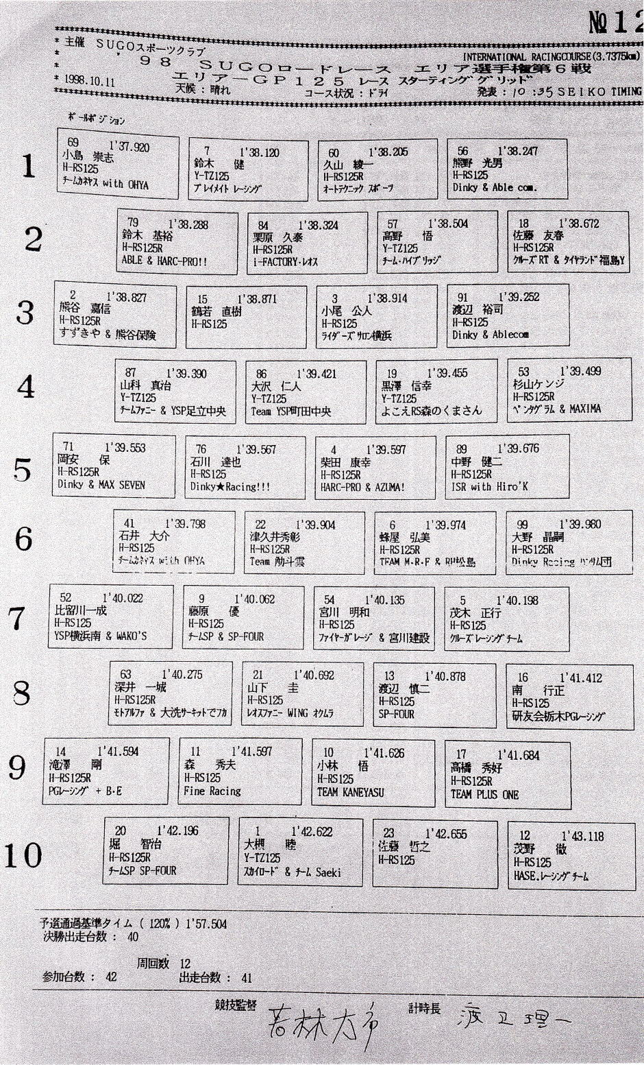 予選結果表