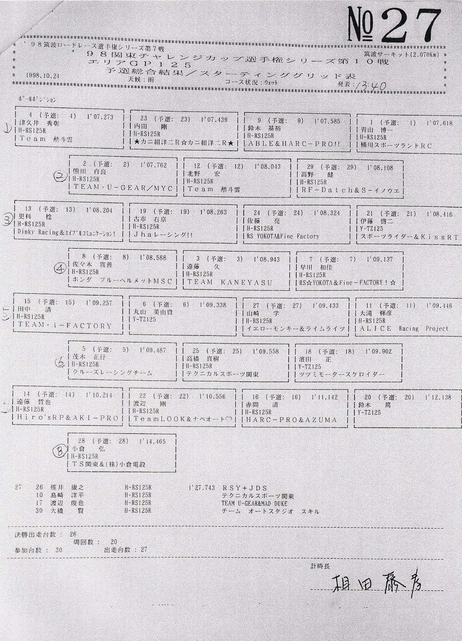 予選結果表